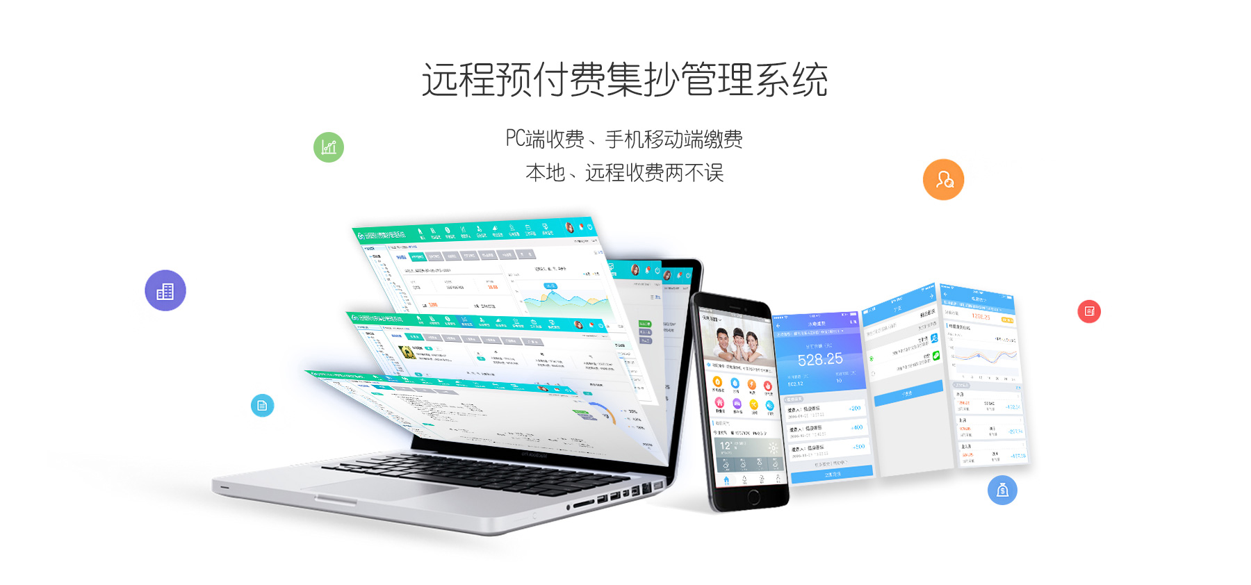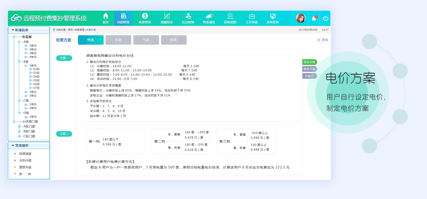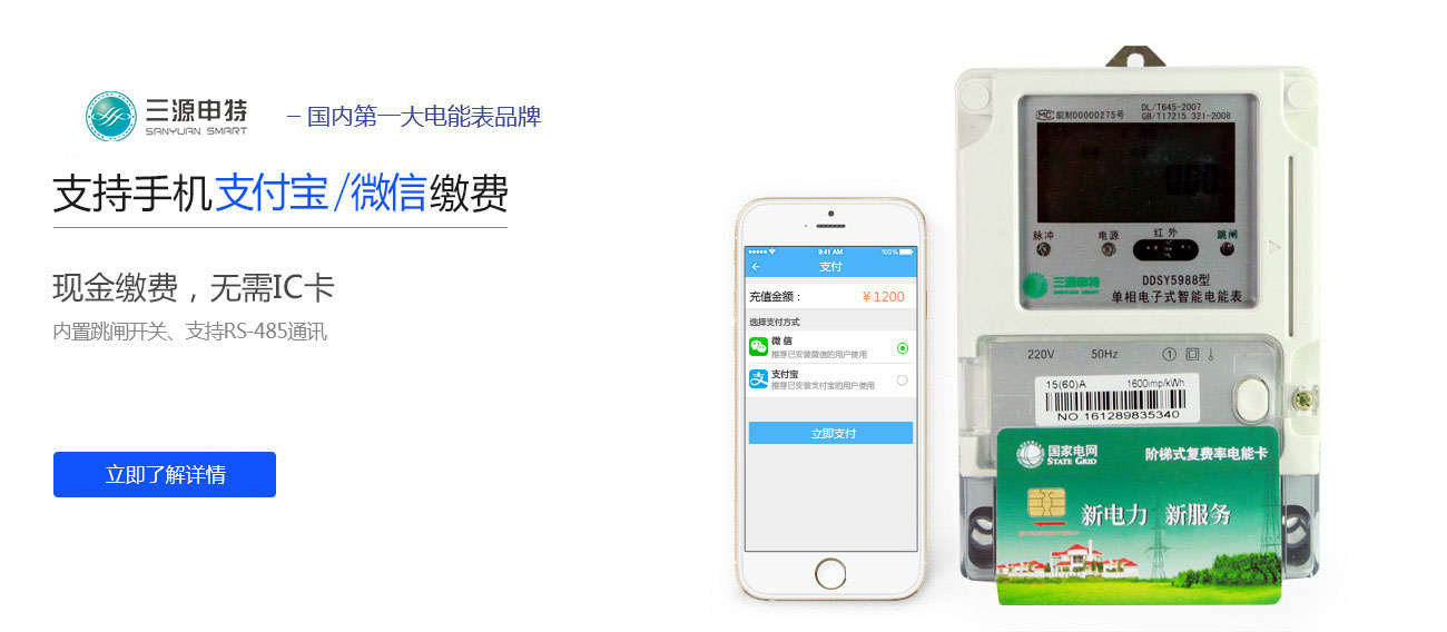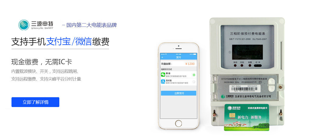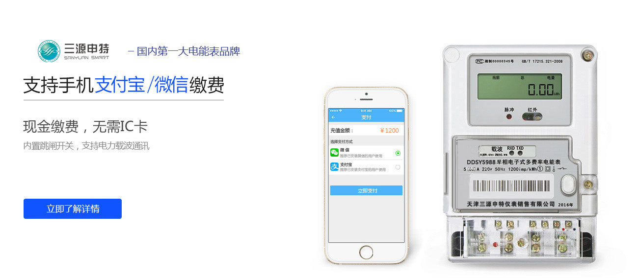 任选功能:PC端现金缴费、手机支付宝/微信缴费、复费率、阶梯计费、手动/自动远程跳闸、预付费功能、后预费功能、透支功能、欠费提前通知
