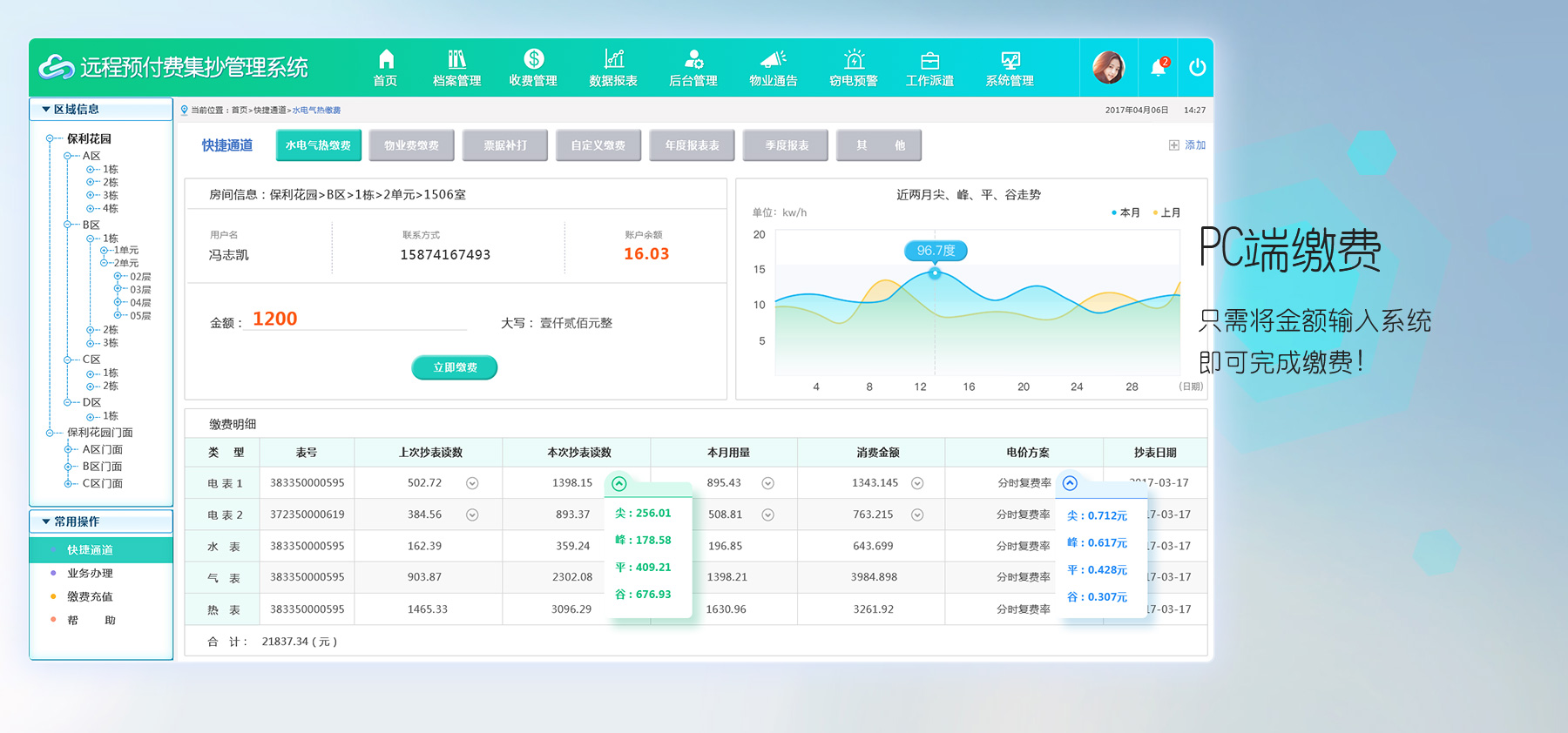 数据统计精细化,水电缴费明细可视化,题提醒功能智能化,便于整合分配人力资源,实现业务最大化增长。